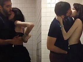 Young college lovers fuck in a restaurant restroom