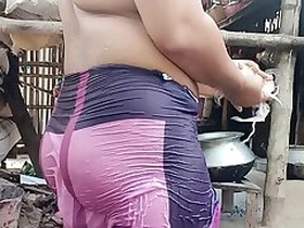 Desi rustic greasy bhabi bath