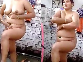 desi auntie self shot bathtub and dress up Video