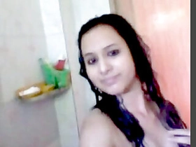 Indian desi girl masturbates with sweaty breasts and beautiful bath