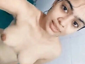 Desi girl showing her cute boobs on selfie cam in bathroom