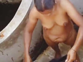 Desi girl taking bath in the river