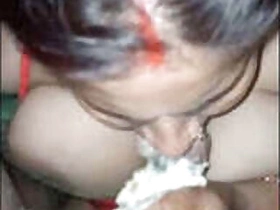 Hot Indian wife gives the best blowjob by red lips