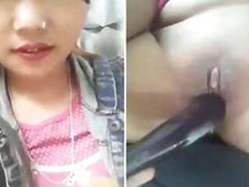 Indian knows how to cum in a minute with help of vegetable in twat