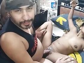 Beautiful Big Tits Wife riding on her husband