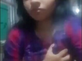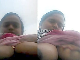 Amateur porn music video of the Desi housewife extracting milk from tits