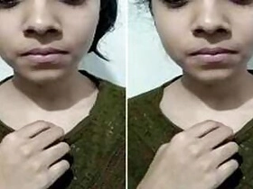 Chubby college girl showing her cute boobs on selfie cam
