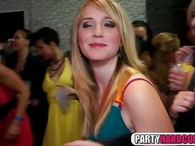 Gangbanggirl swallows cum