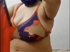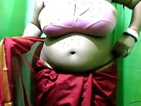 Booby aunty with black huge melons wearing sari showing huge cleavage and big navel