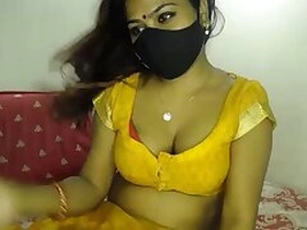 Indian fellow plays with her juicy XXX tits until she notices camera