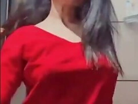 Desi bhabi self boobs press and licking boobs and her own finger selfie clip for lover