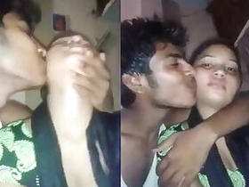 Desi couple kiss and boob suck