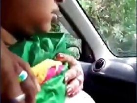 desi couple kissing blowjob in Car