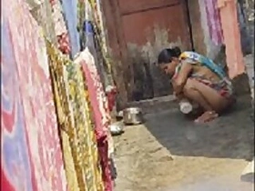 Indian lady showing her half-naked body outside