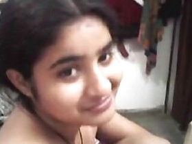 Desi bhabi self boobs press and licking boobs and her own finger selfie clip for lover