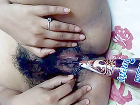 Orange vibrator is very useful in the porn music video where Indian masturbates