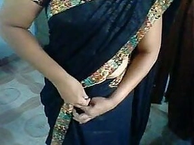 Indian sari-clad fatty mom shows off her huge busty ass on webcam