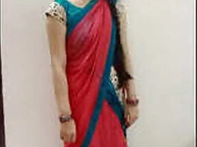 Desi girl Mahi in black saree erotic show