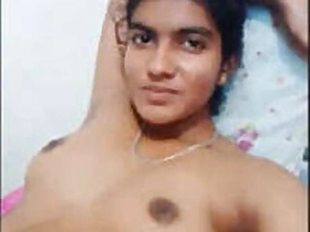 sexy girl showing her breasts on the video bed