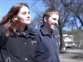 Russian Bonnie Girl Sasha gets laid, carried away by two hot bloody guys all over muggers
