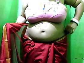 Aunt Booby with huge melons wearing sari showing her huge cleavage and big belly button