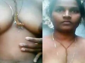 Cunning boy sneakily films how Desi woman washes XXX jugs outdoors