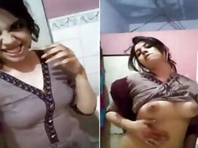 Desi stripper touches XXX boobs and presses chudai sex nipples to wall