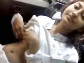 Indian girl for money takes her selfie cloths