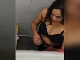 Desi sex student pulls T shirt up to demonstrate XXX breasts in a library