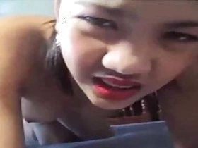 Wild Asian teen slut sucking then fucking like a bitch