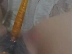 Girls Out West Vegetables in her hairy teen fingering pussy