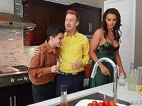 Milf Julia Ann threesome in the bedroom with real teen couple