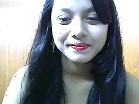Small tittied Indian camgirl entertains herself by pussy licking and fingering
