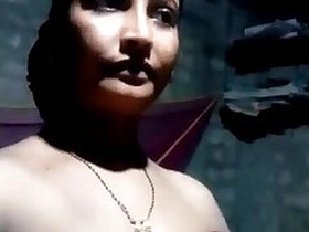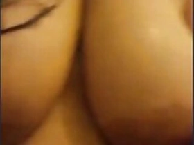 Indian wife takes her natural breasts with nipples to light in solo porn