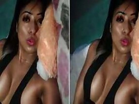 Half naked XXX Desi babe films a sex video of her boobs in a blue bra