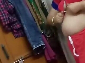 Desi man catches his fat wife with big XXX tits dressing for work