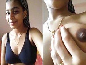 Desi man coaxes GF to film video in which she play on camera with own XXX tits