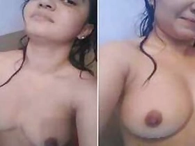 Excited Desi sweetheart shows on the camera her medium XXX breasts