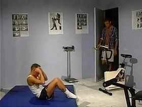 Muscled studs have hot cock sucking fucking in gym